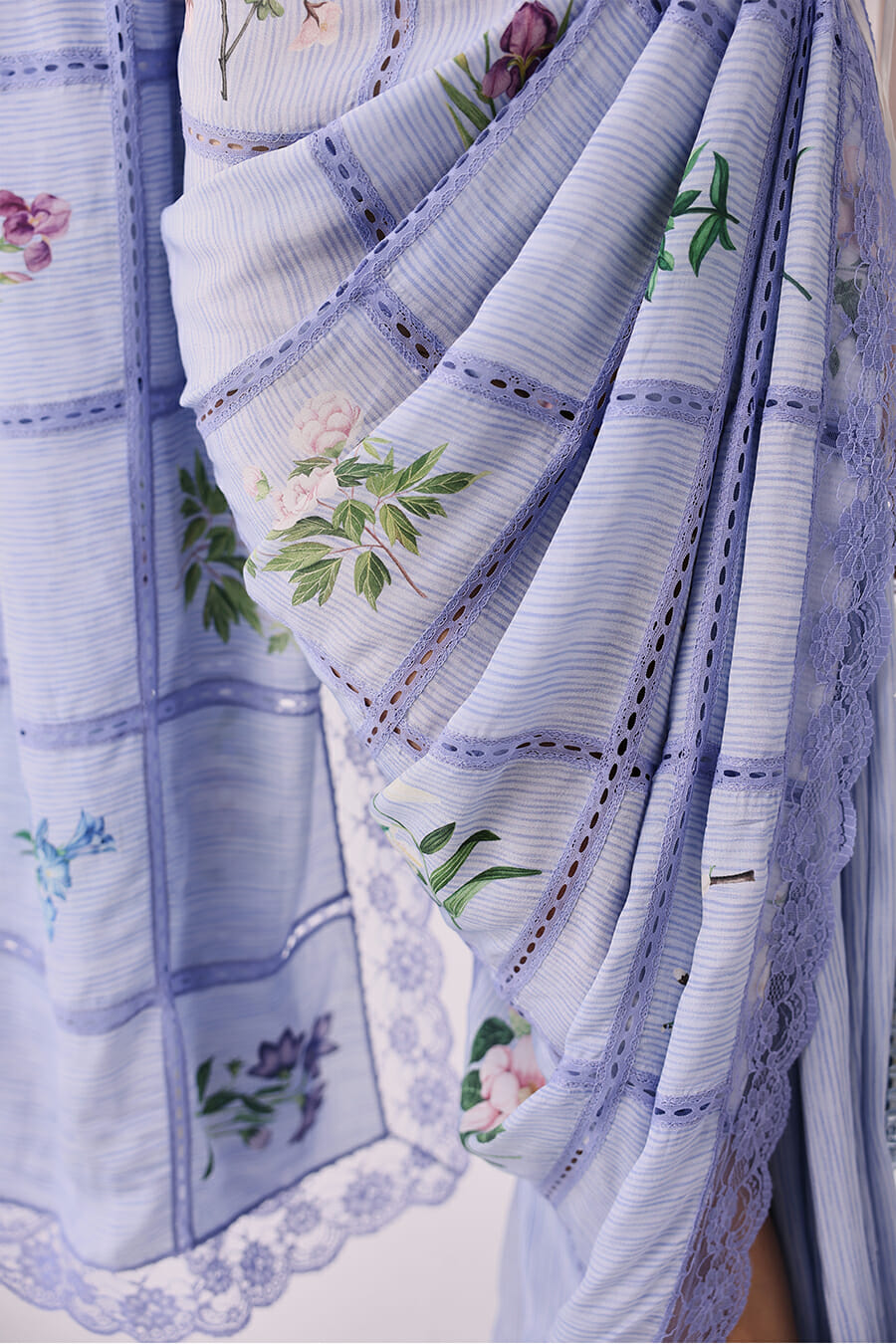 Floral patchwork and lace details make up this beauty that comes in two lovely colour ways — Periwinkle & Strawberry Yoghurt.