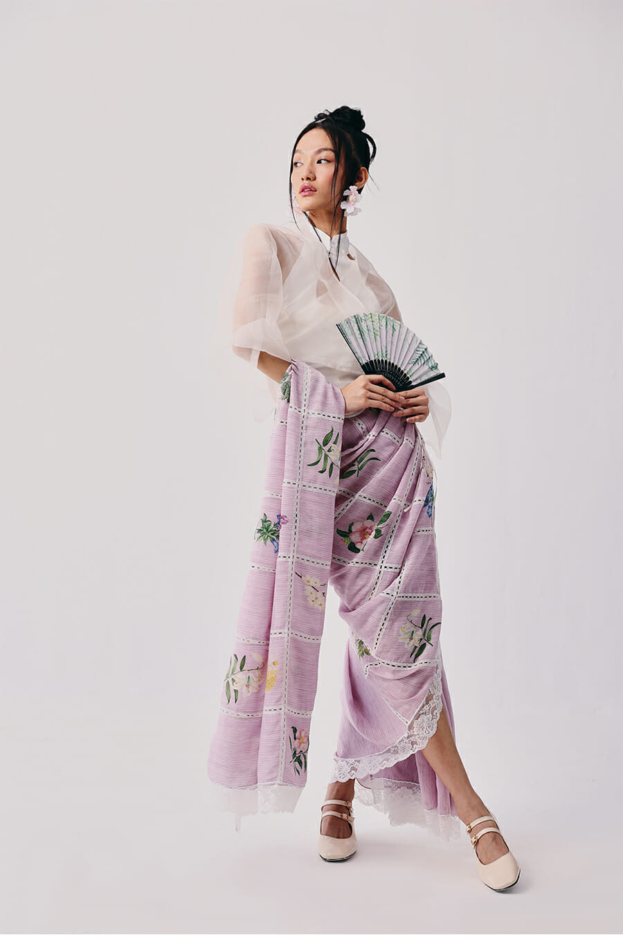 When you first hear it, it may seem that our Asagao sari is named after Goa’s hip village of the same name.