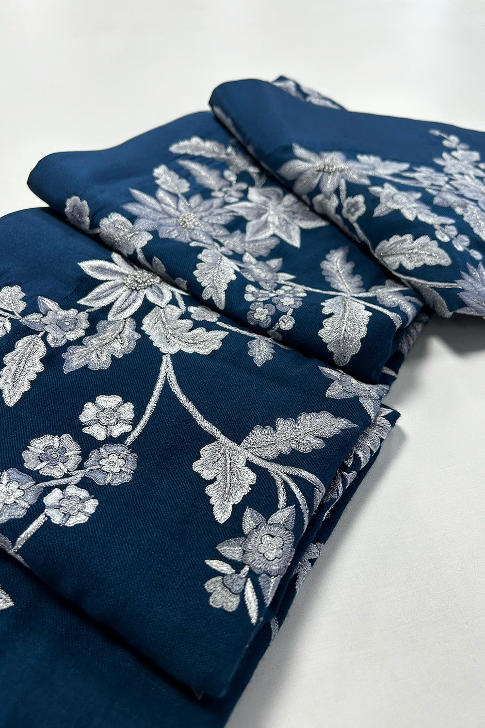Lush gardens from the subcontinent and beyond have always inspired our embroidery. Our Nishat shawl in soft pashmina, hand-embroidered in shades of grey & silver, follows our house vocabulary. Wrap yourself in this timeless piece from Pashm Vol. II, our new collection of hand-embroidered shawls.