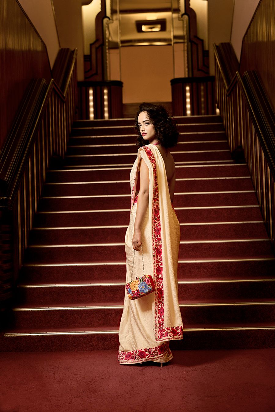 The ‘Taylor Rose’ sari from our festive 2022 collection features an intricate rose border on a self-patterned jacquard body.