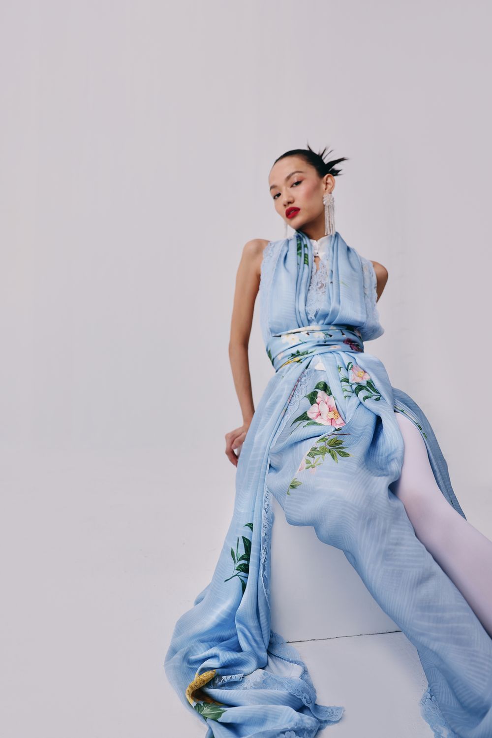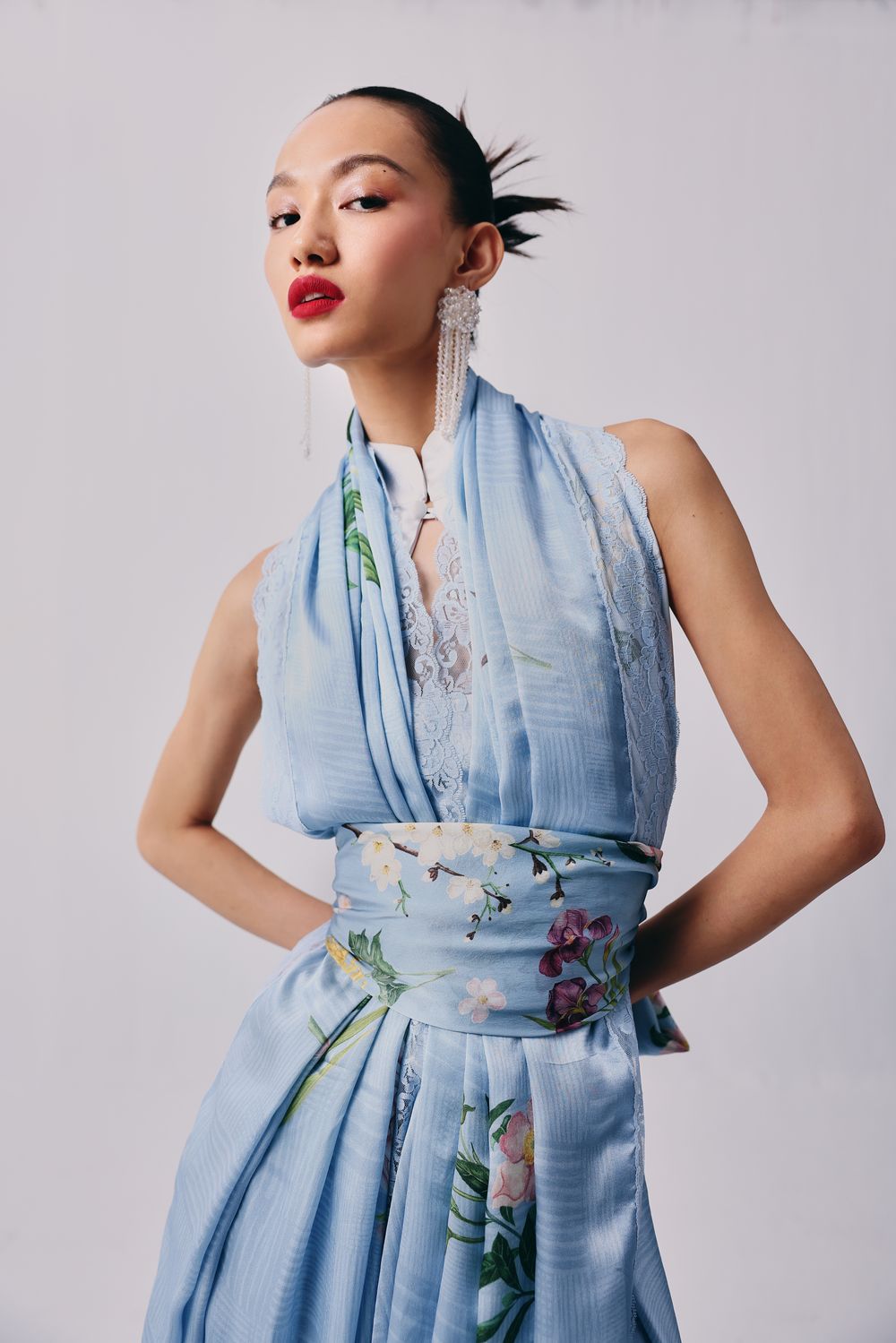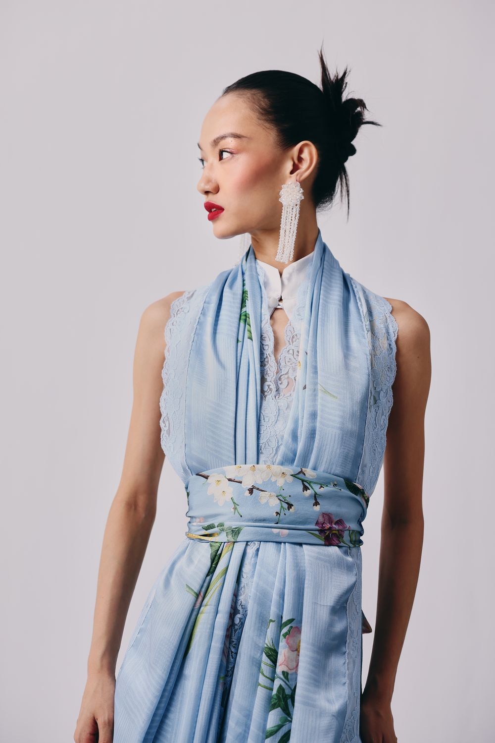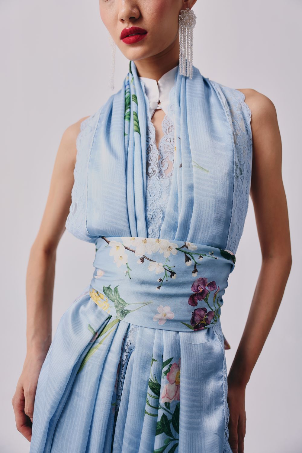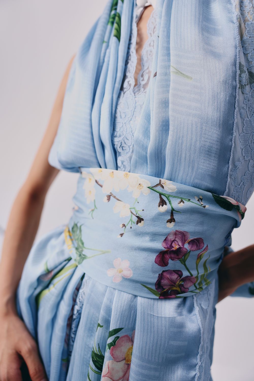 In keeping with our theme, the Ume sari celebrates the season of abundance with a smattering of Japanese florals.